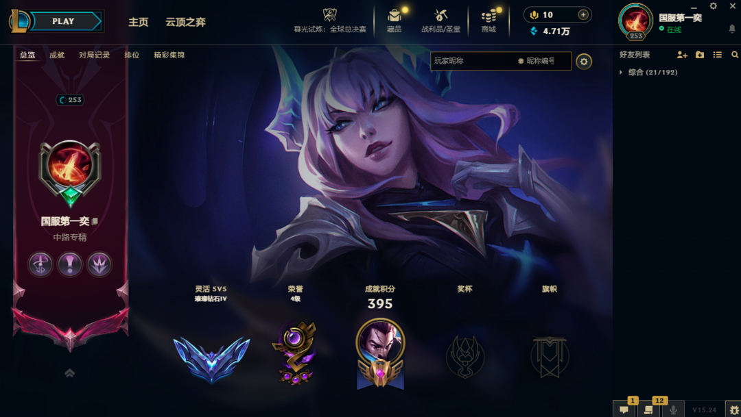 段位:254级 当前赛季无