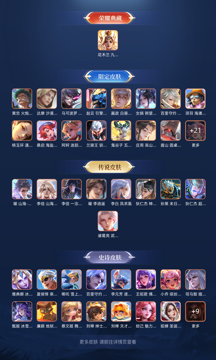 一年多没怎么玩了,稀有皮肤不是很多,但是耀和李信的皮肤都是有的