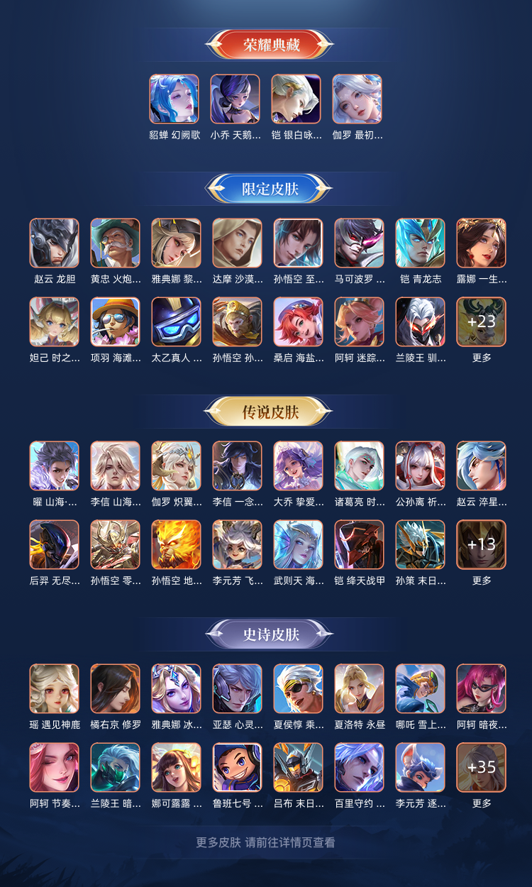 V10★全英雄★428皮肤★1珍品无双★4荣耀典藏★4无双★6珍品传说★59传说★125史诗