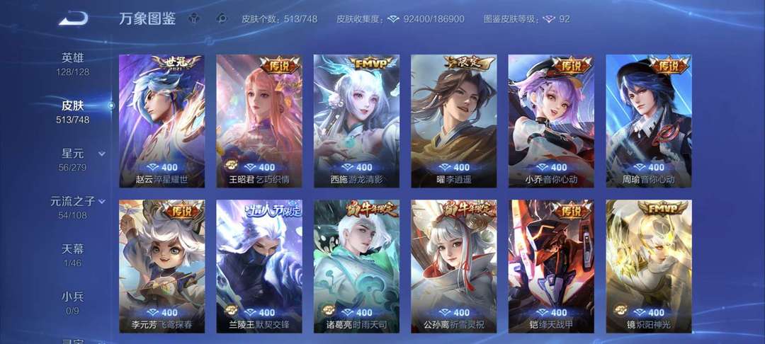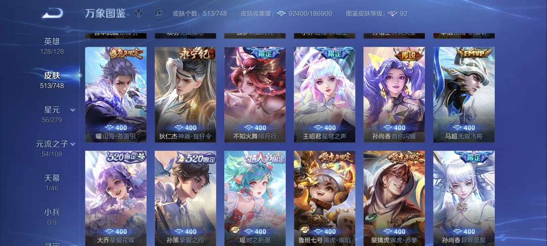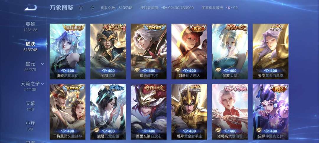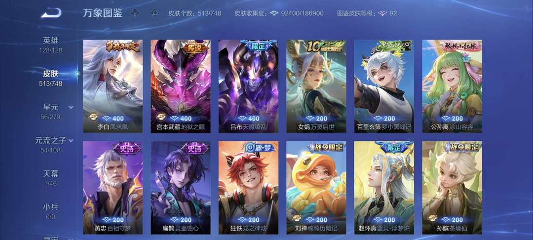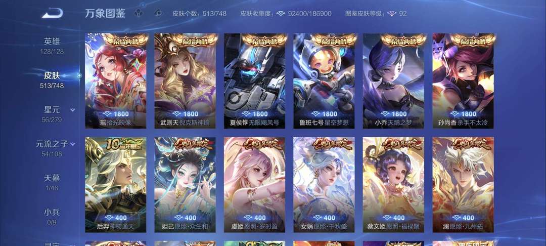 513个皮肤,128个英雄,荣耀王者,V10账号