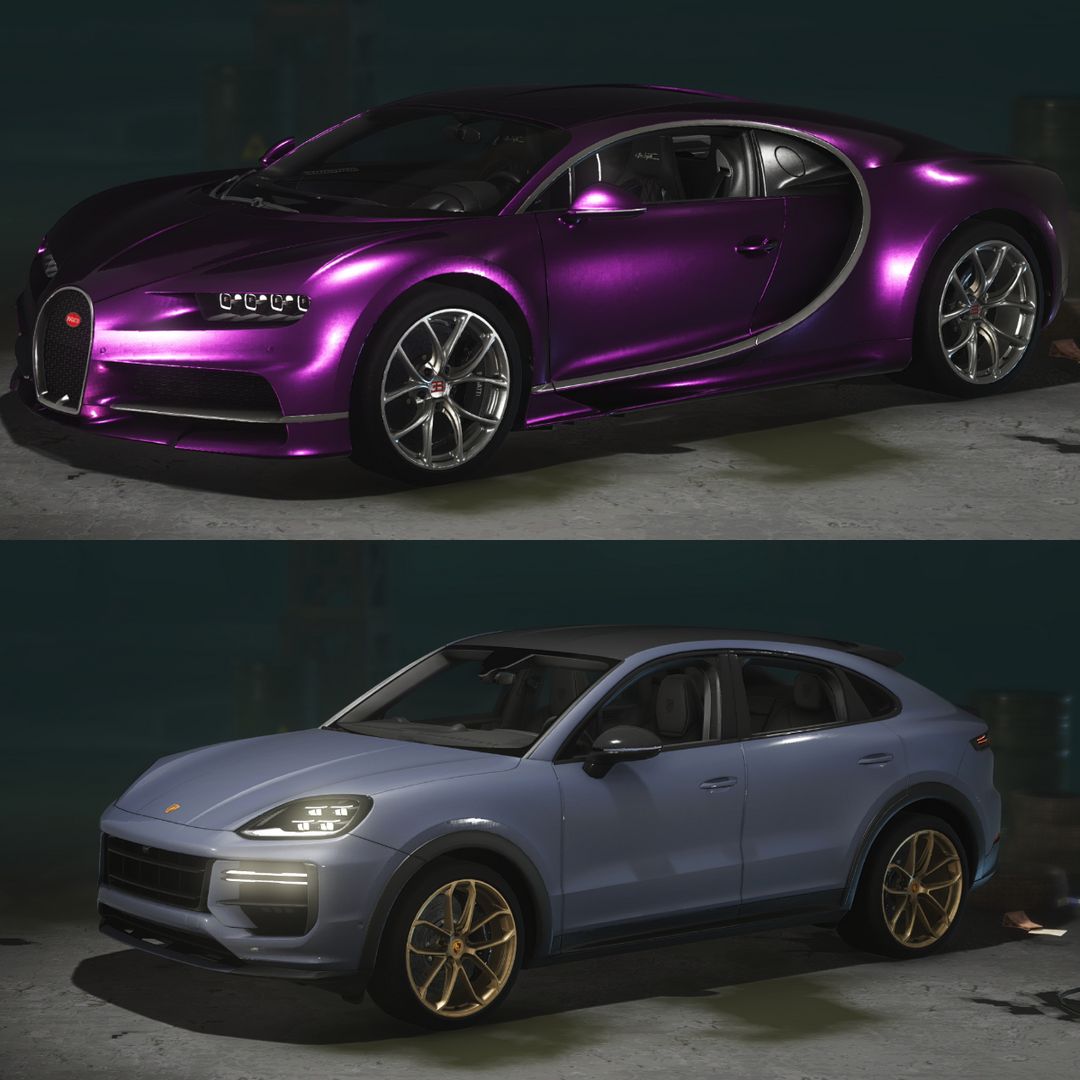 保时捷卡宴+紫白布加迪跑车可拍位-⑤级妖魔ACE②异色GD-AUG竞争者25白战神衣