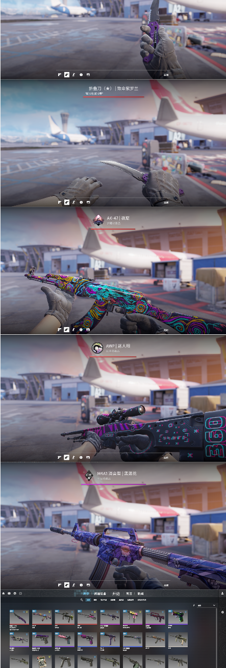 完美老兵丶折叠刀丶ak47夜愿丶awp迷人眼丶m4黑莲花丶多红皮主战