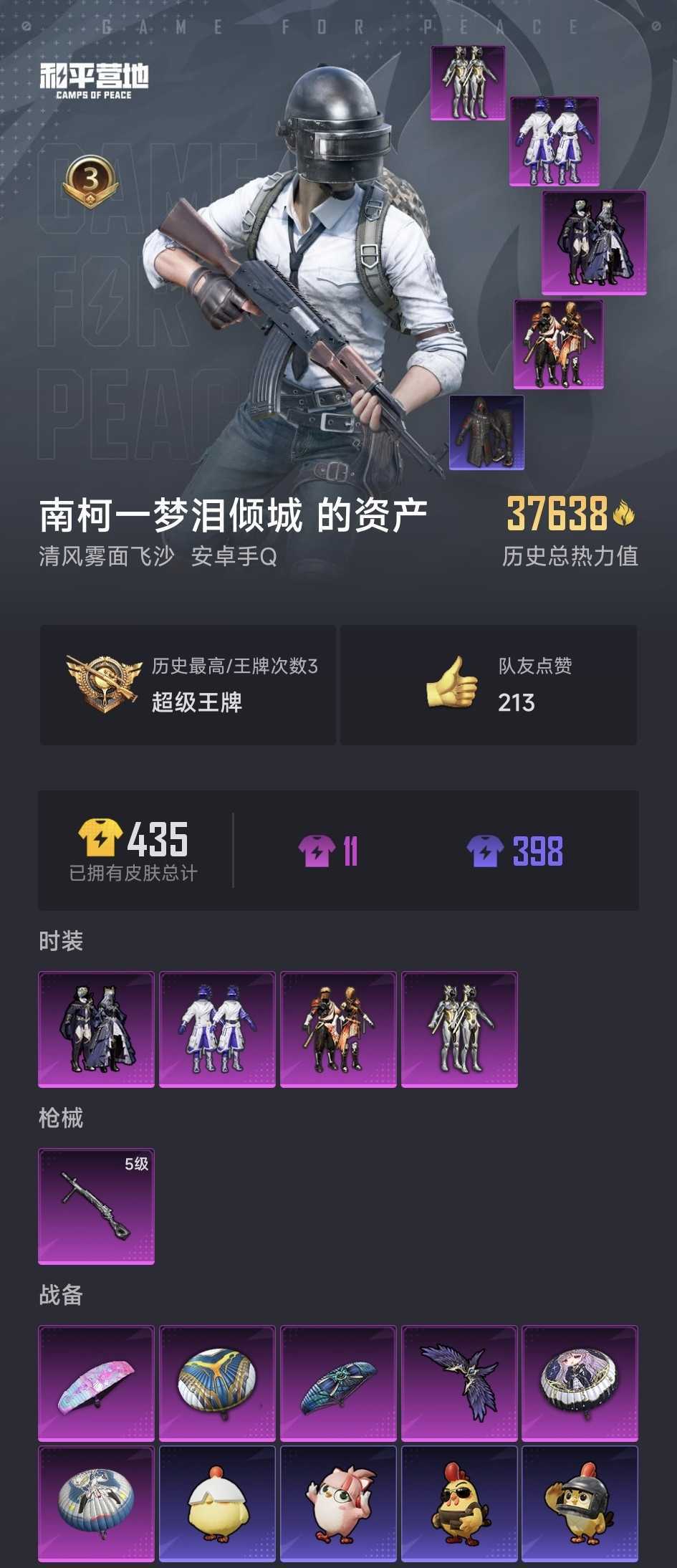 和平多粉装11粉装❤️5级枪械❤️热力值高❤️最新时装战备齐全