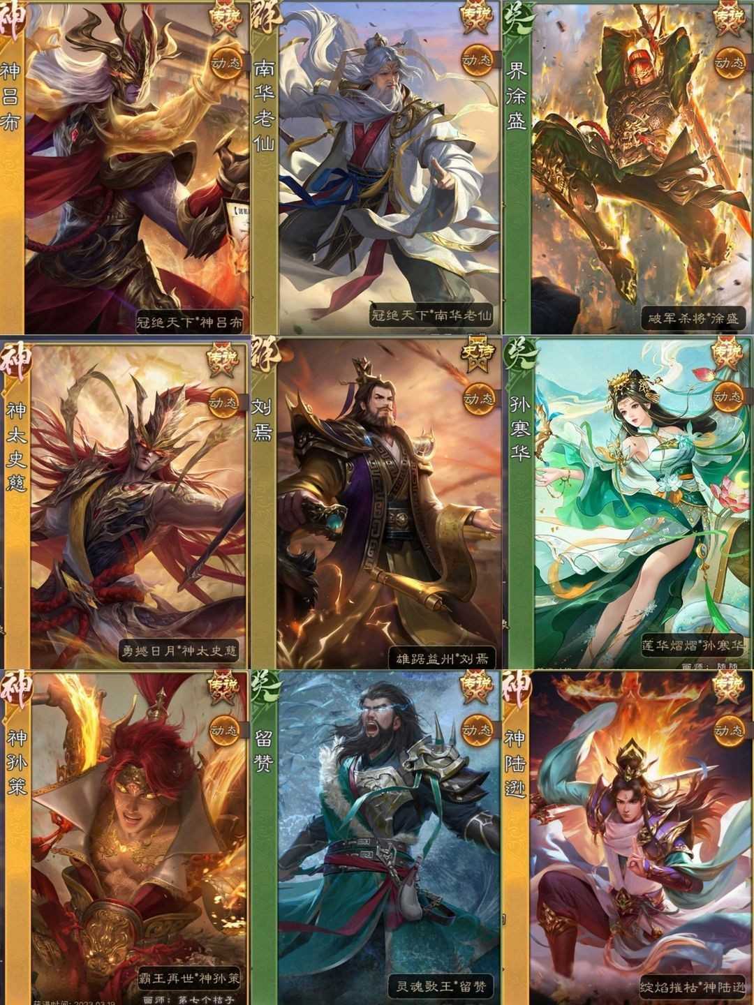 有卡新鲍三娘❤️极品重氪全伪❤️85史诗一等大将军❤️满神将全6巨头带动态皮肤♑动神孙策♑裴秀孙寒华